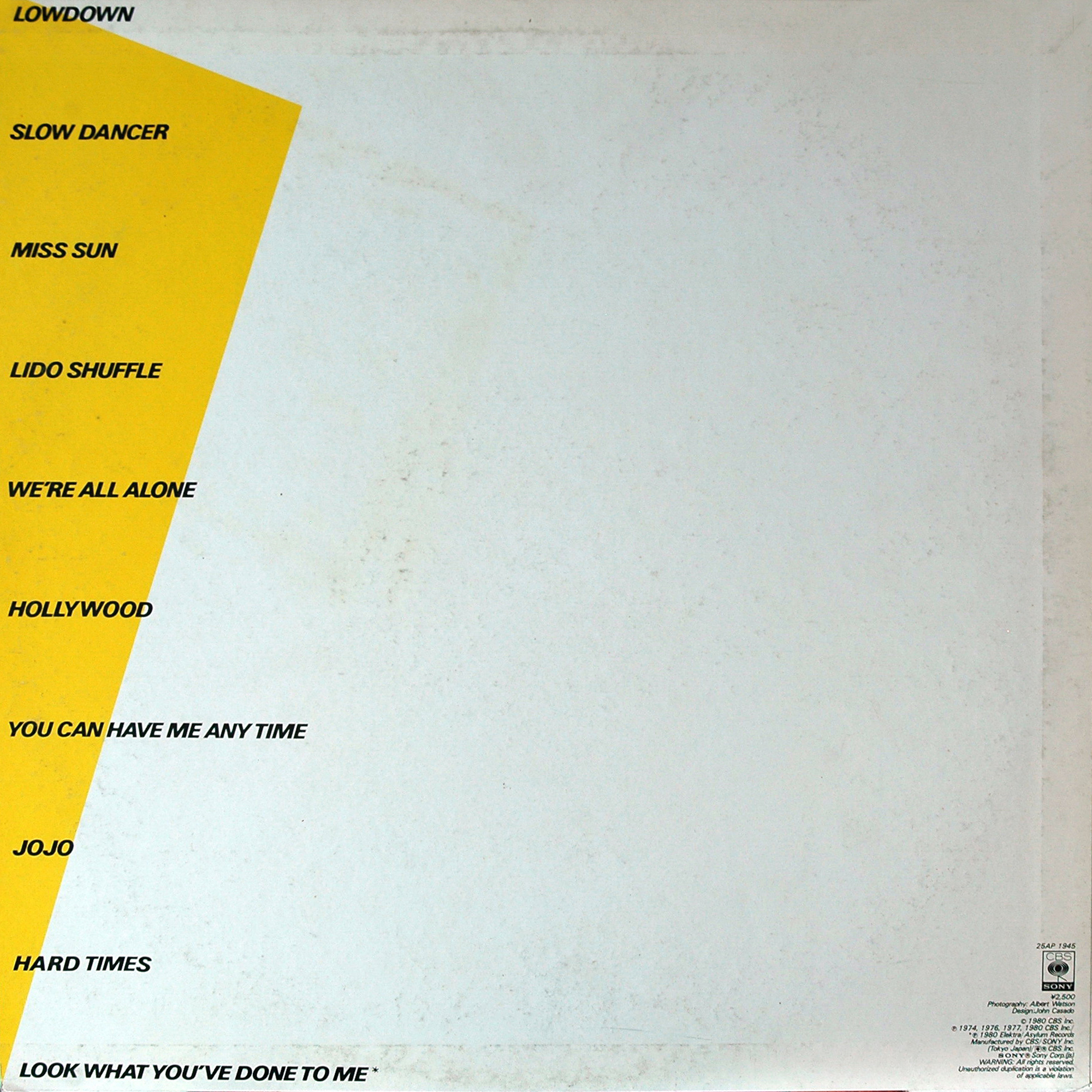 1. ”Lowdown" (Boz Scaggs, David Paich) – 4:27