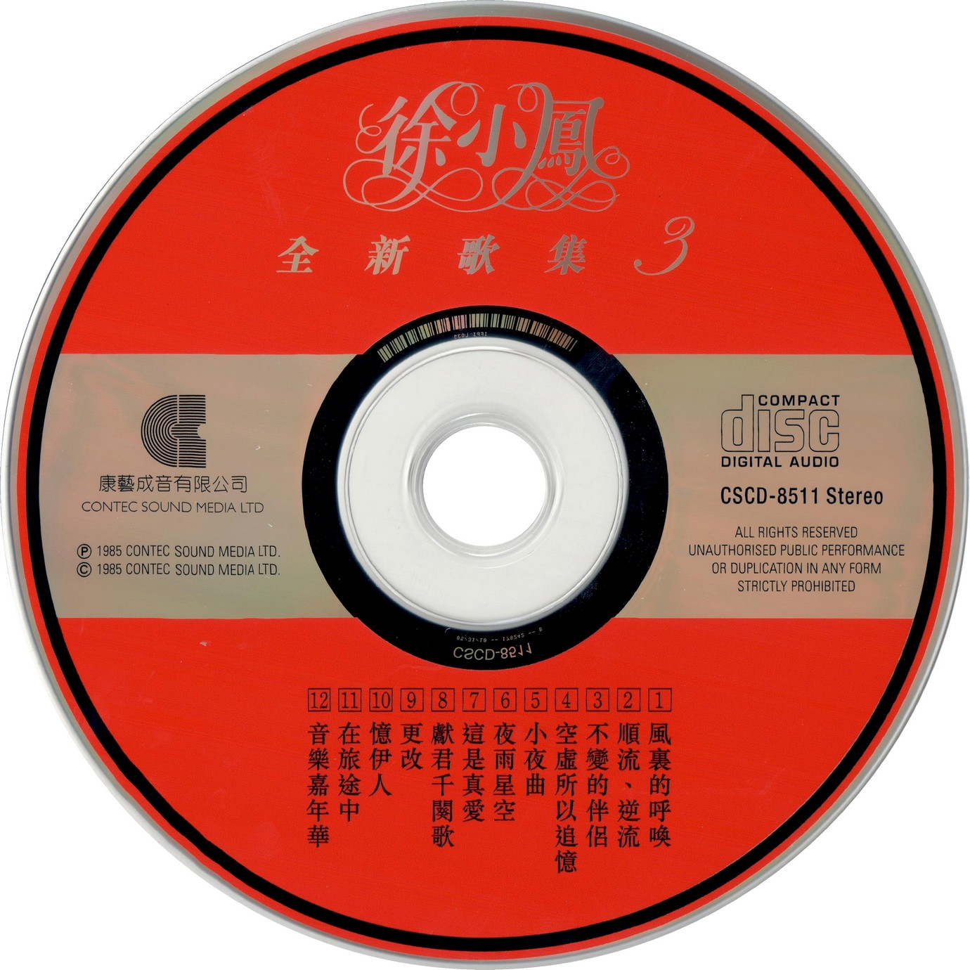 在康艺成音唱片公司的四年,徐小凤陆续推出了一张演唱会、一张精选、一张国语、以及三张粤语专辑。三张粤语全部以“全新歌集”系列来命名,1985年的第三张粤语专辑名为“全新歌集3”。这是借鉴Chicago乐队的专辑起名风格吗?他们以罗马数字作为专辑标题,由于罗马数字不便辨认,后来出得多了,便又用上了阿拉伯数字,直至1999年的26。无独有偶,童安格当年的引进版也有以“新曲”系列取名的,那些有数字强迫症的唱片公司话事人真是无处不在。